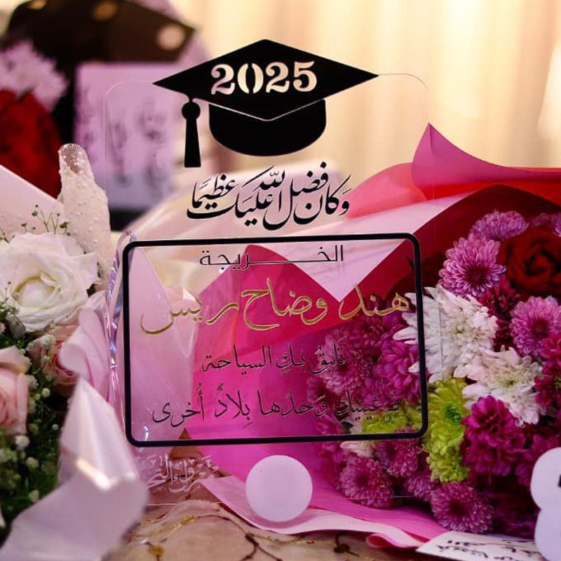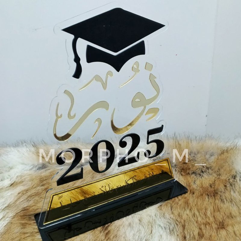 ستاند تخرّج بليكسي شفاف اسم (ذهبي - فضي)