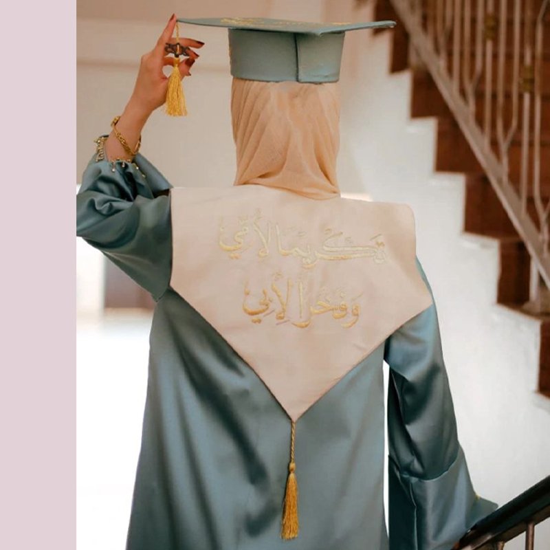 طقم تخرّج قماش جيسكا تطريز (وشاح + قبعة)