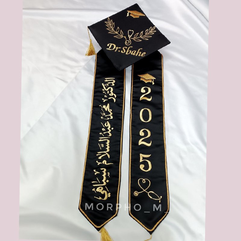 طقم تخرّج ملكي تطريز (وشاح + طاقية)